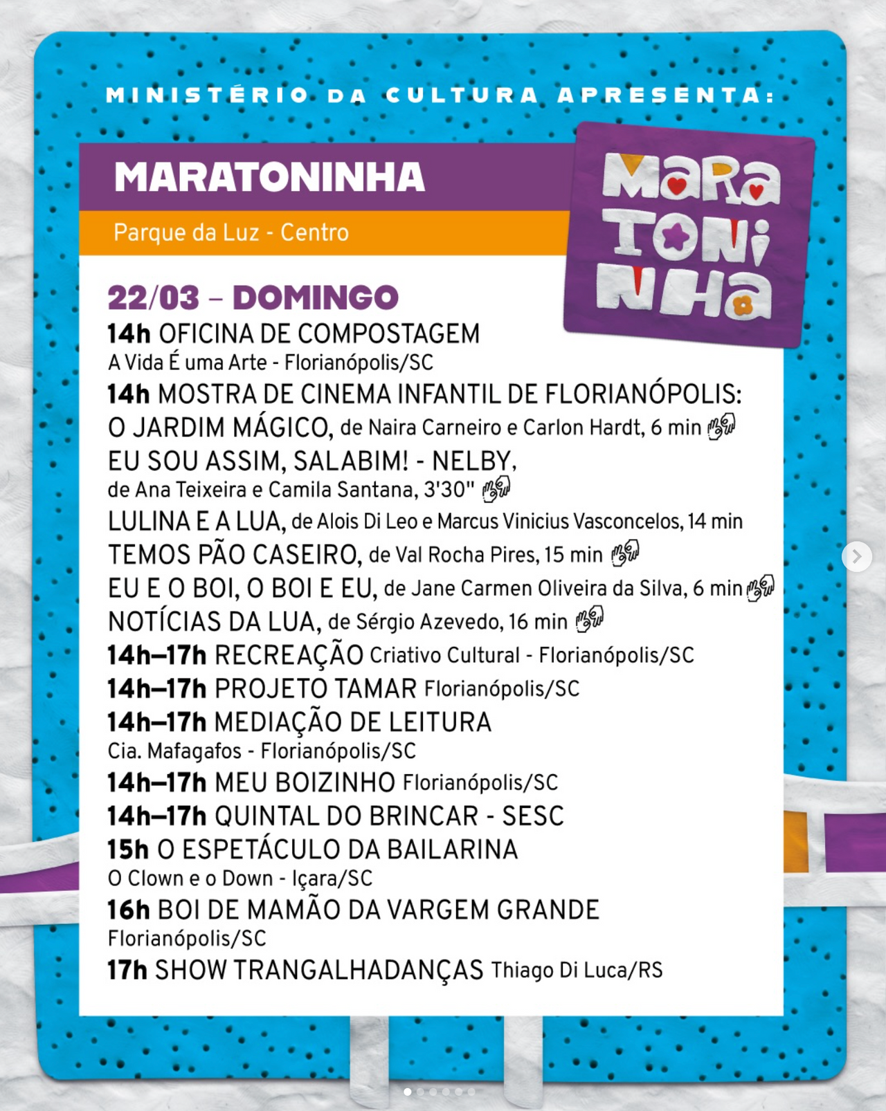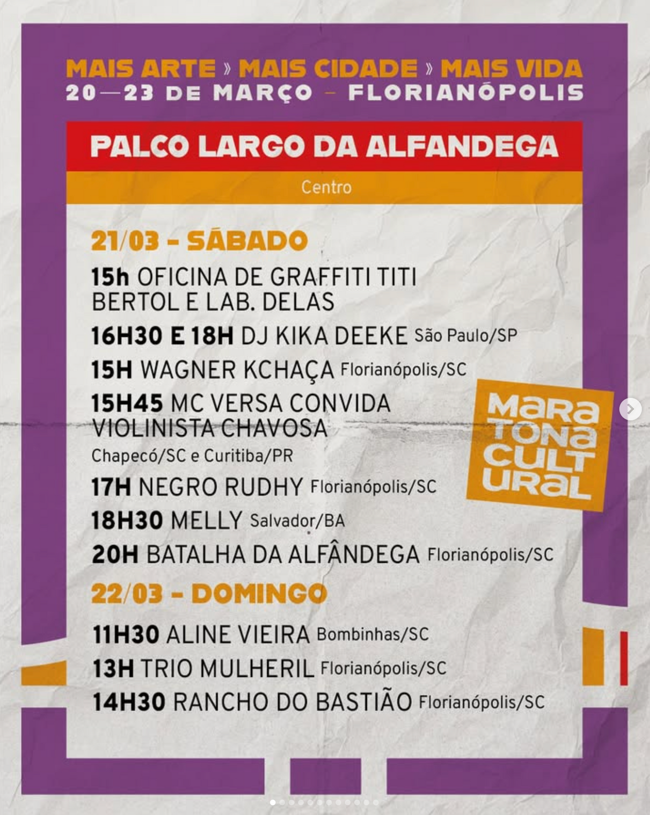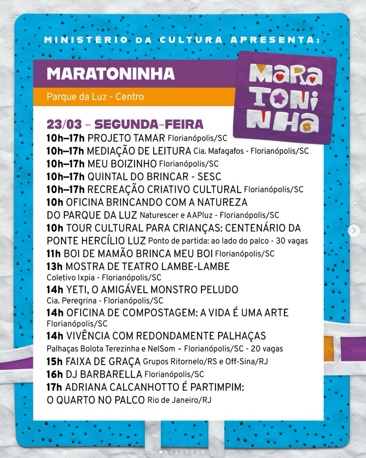 A programação completa e mais informações você pode conferir no instagram oficial